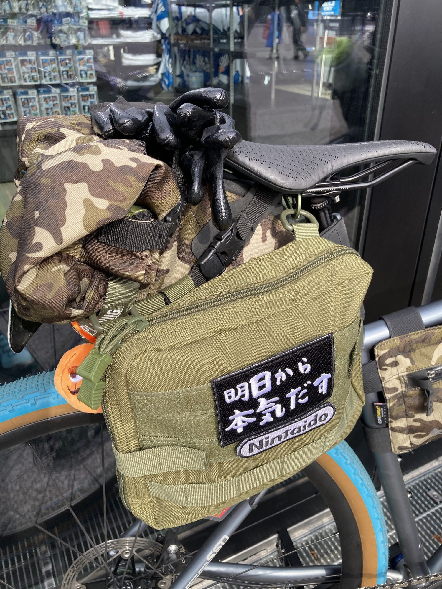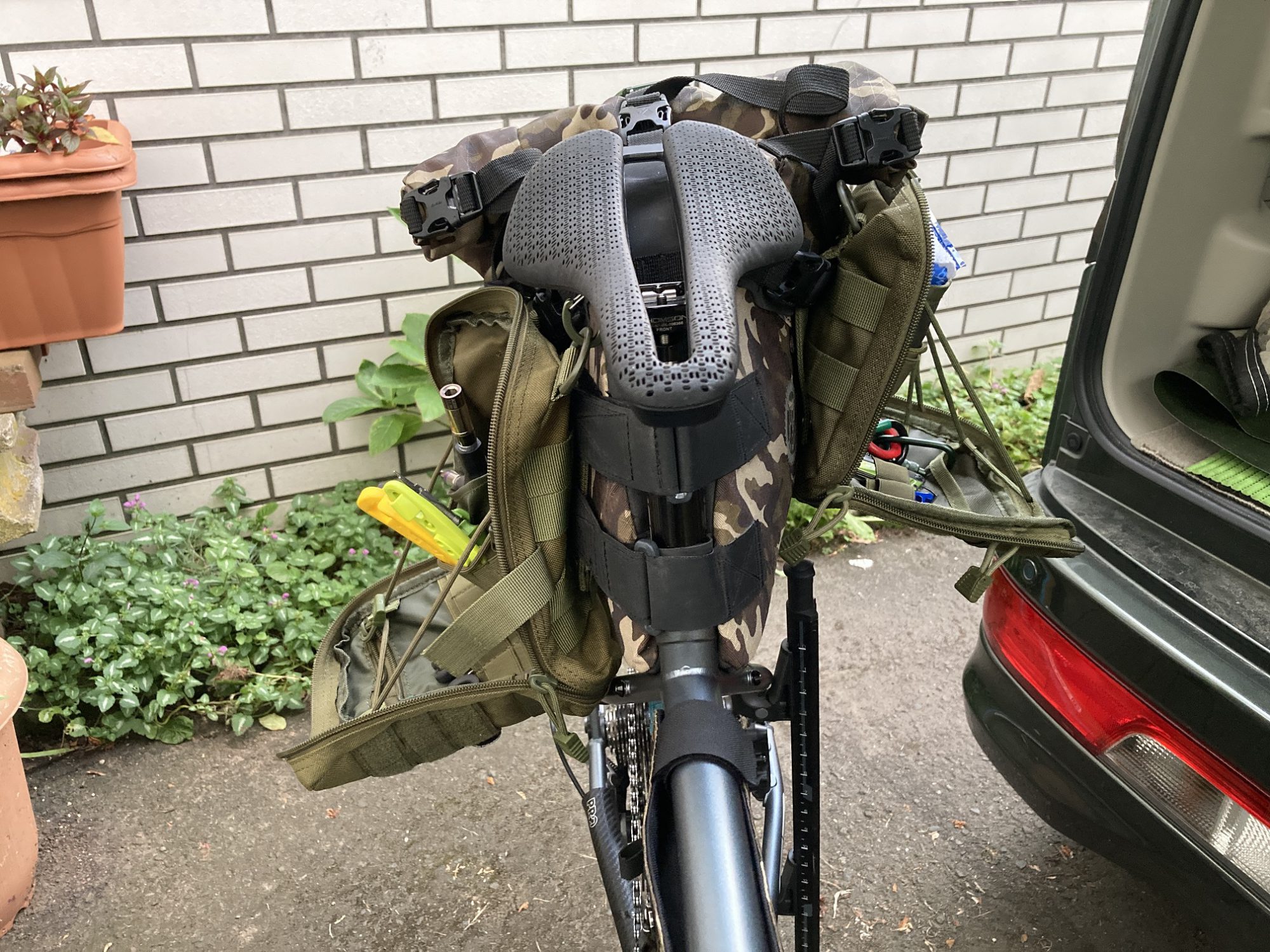 ふざけたサブバッグ(自転車用ではありません)を取り付けて、