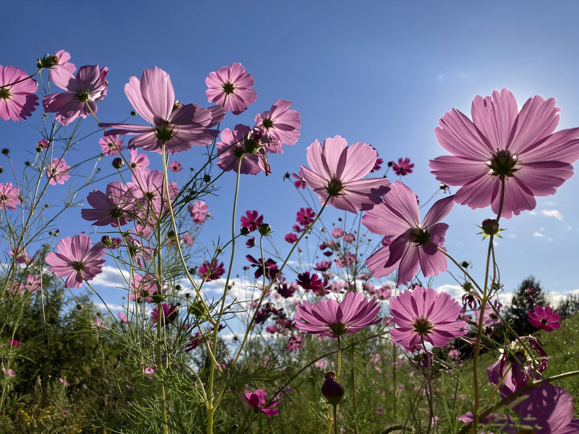 そして逆光になりますけど、コスモスの花で上手く太陽を隠して撮影します。