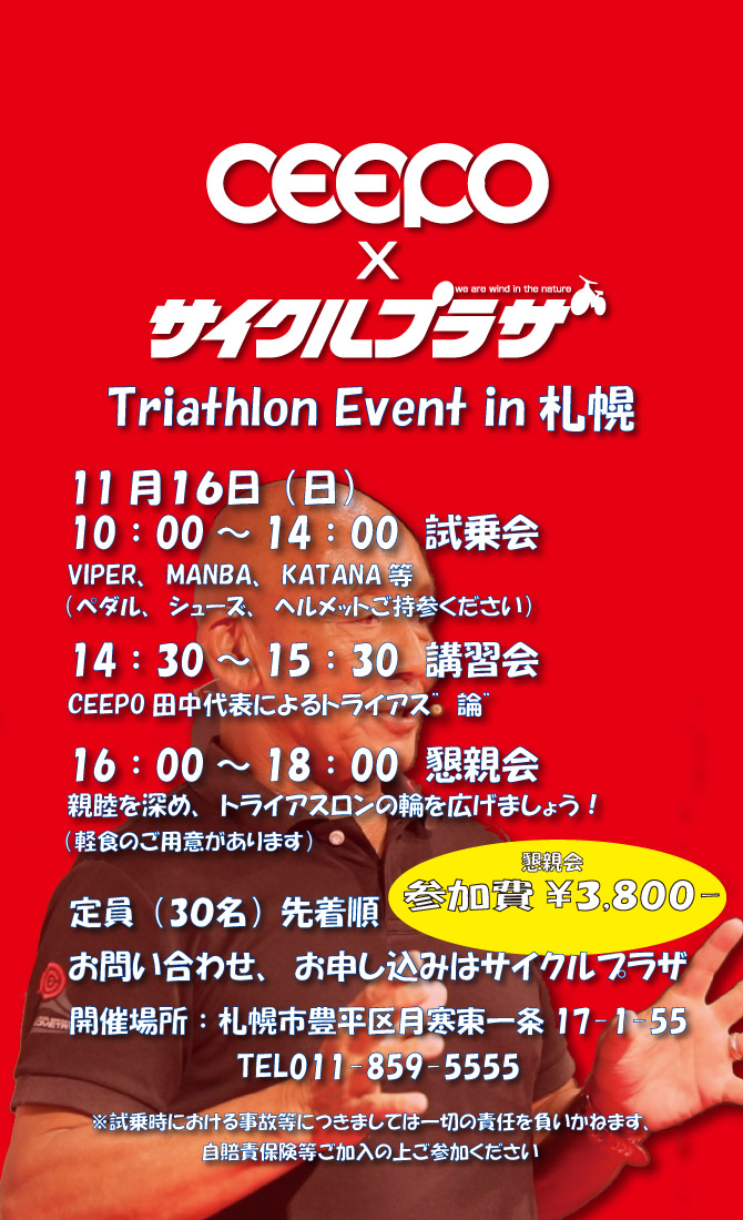 北海道札幌市にある道内最大級の自転車専門店! 札幌ドームから車で5分!! お店の最新情報、最新アイテムやスタッフが見つけた面白い話やアイテムを随時配信! 定休日:水曜日 営業時間:11時〜19時 場所:北海道札幌市豊平区西岡3条5丁目5-6 TEL:011-859-5555