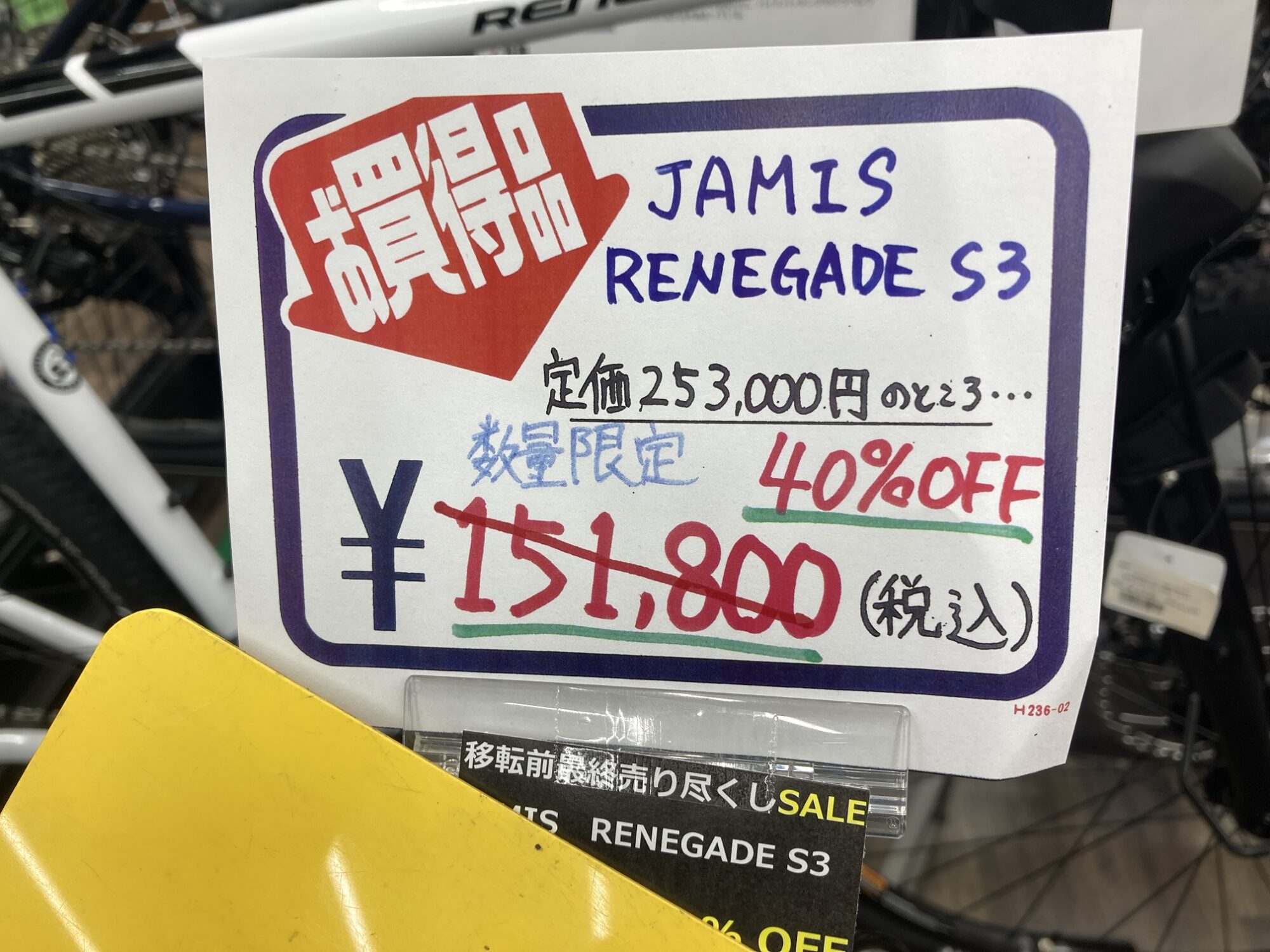 使い勝手の良い、JAMIS RENEGADE(レネゲード)グラベルバイクを