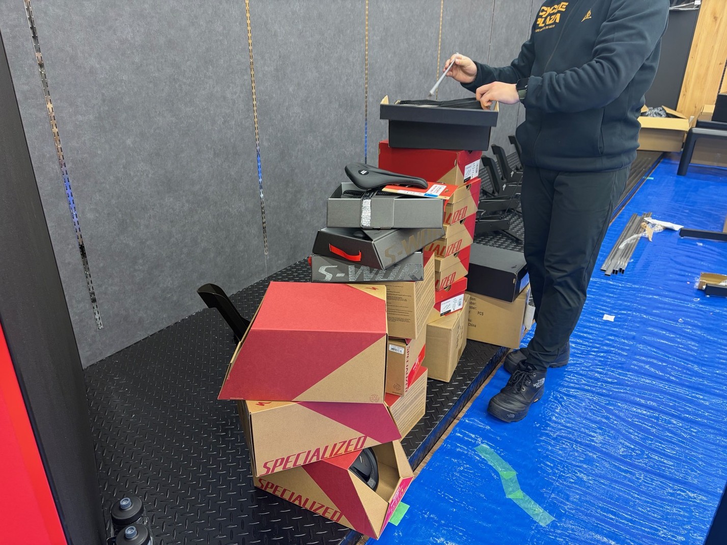まだまだ組み立てなければならない高級車、E-BIKE、クロスバイク、試乗車がいっぱいあります!!