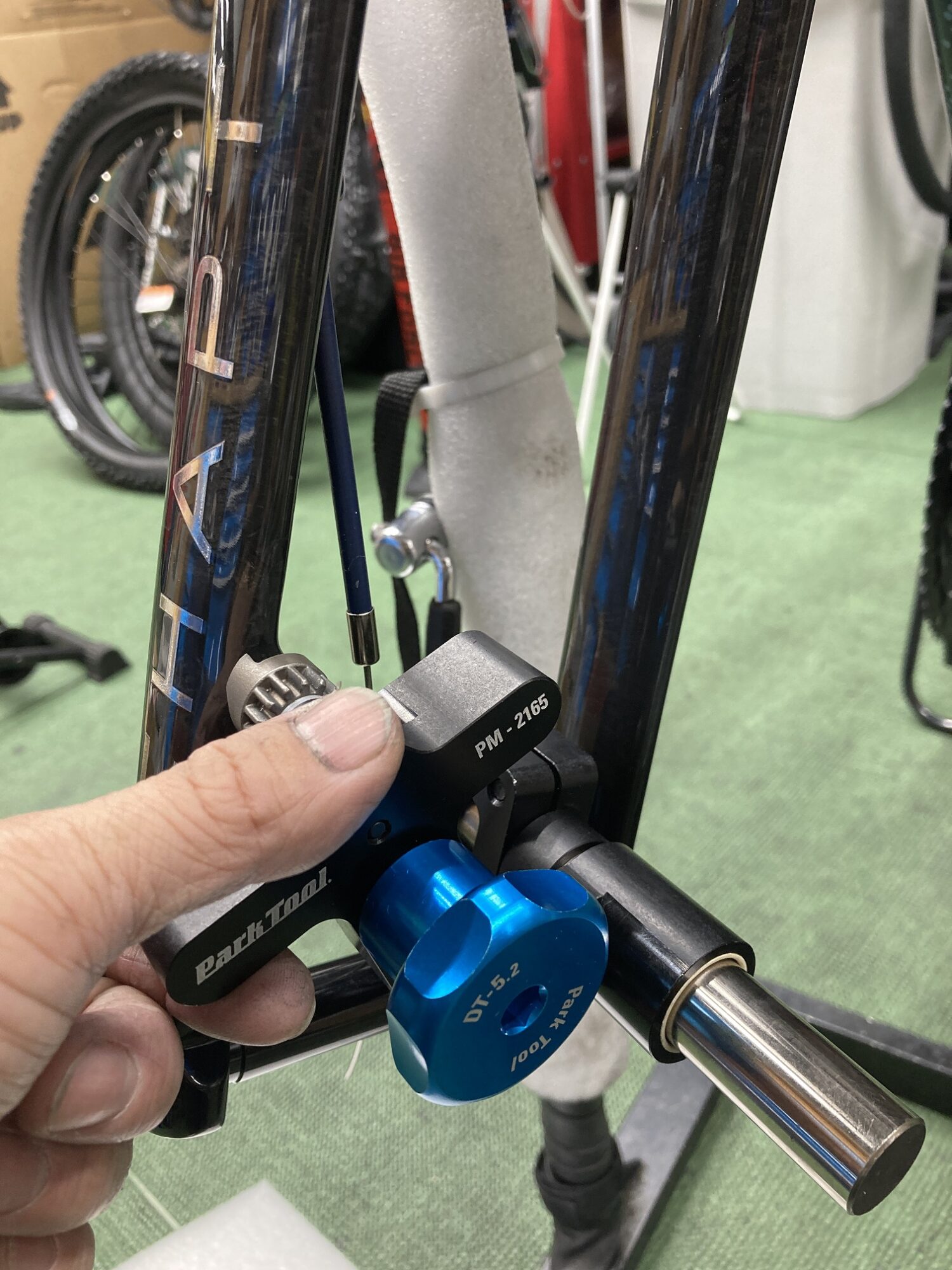 新品のフレームでも、ディスクブレーキ台座の精度が出ていない場合がございます。