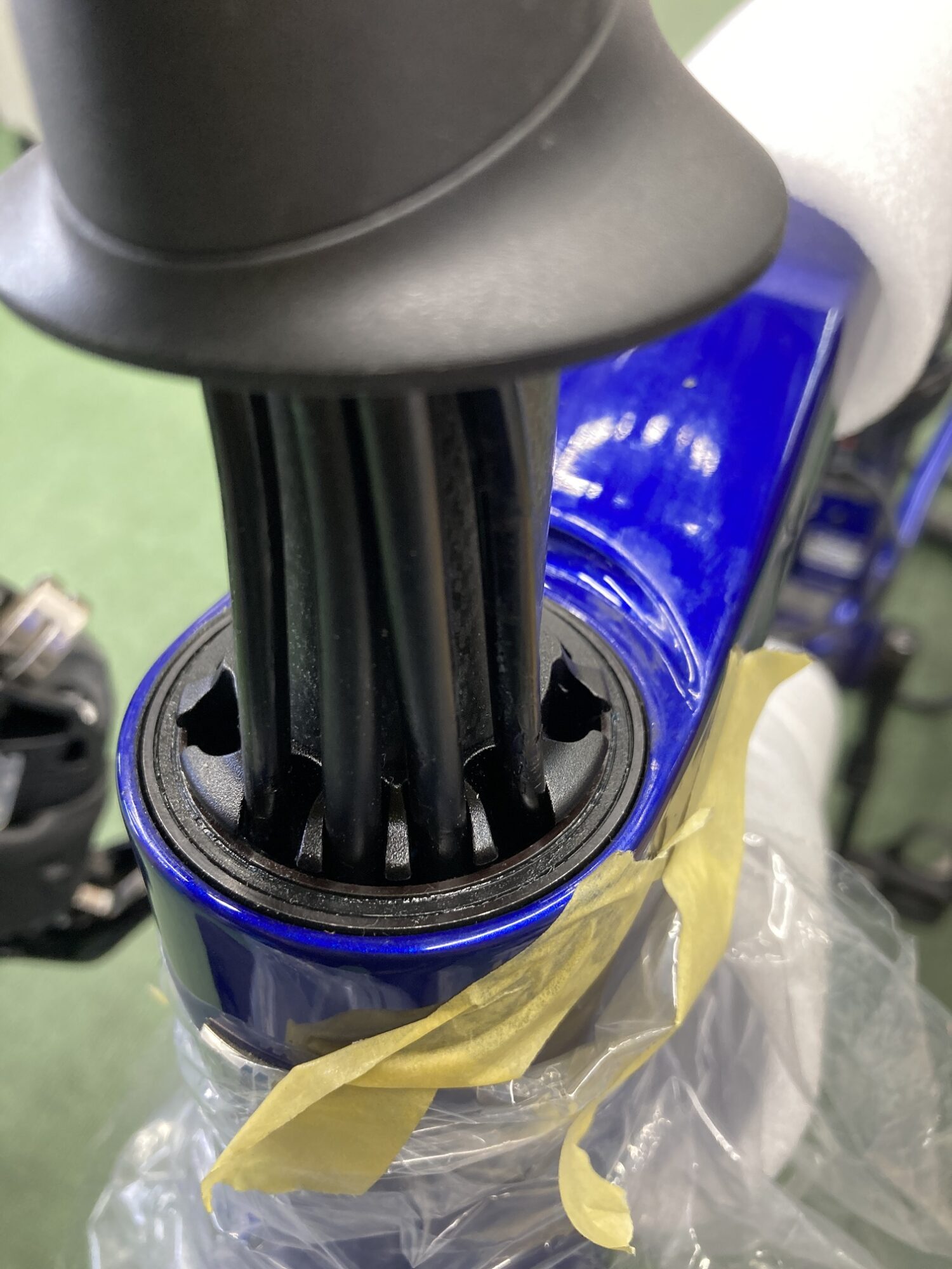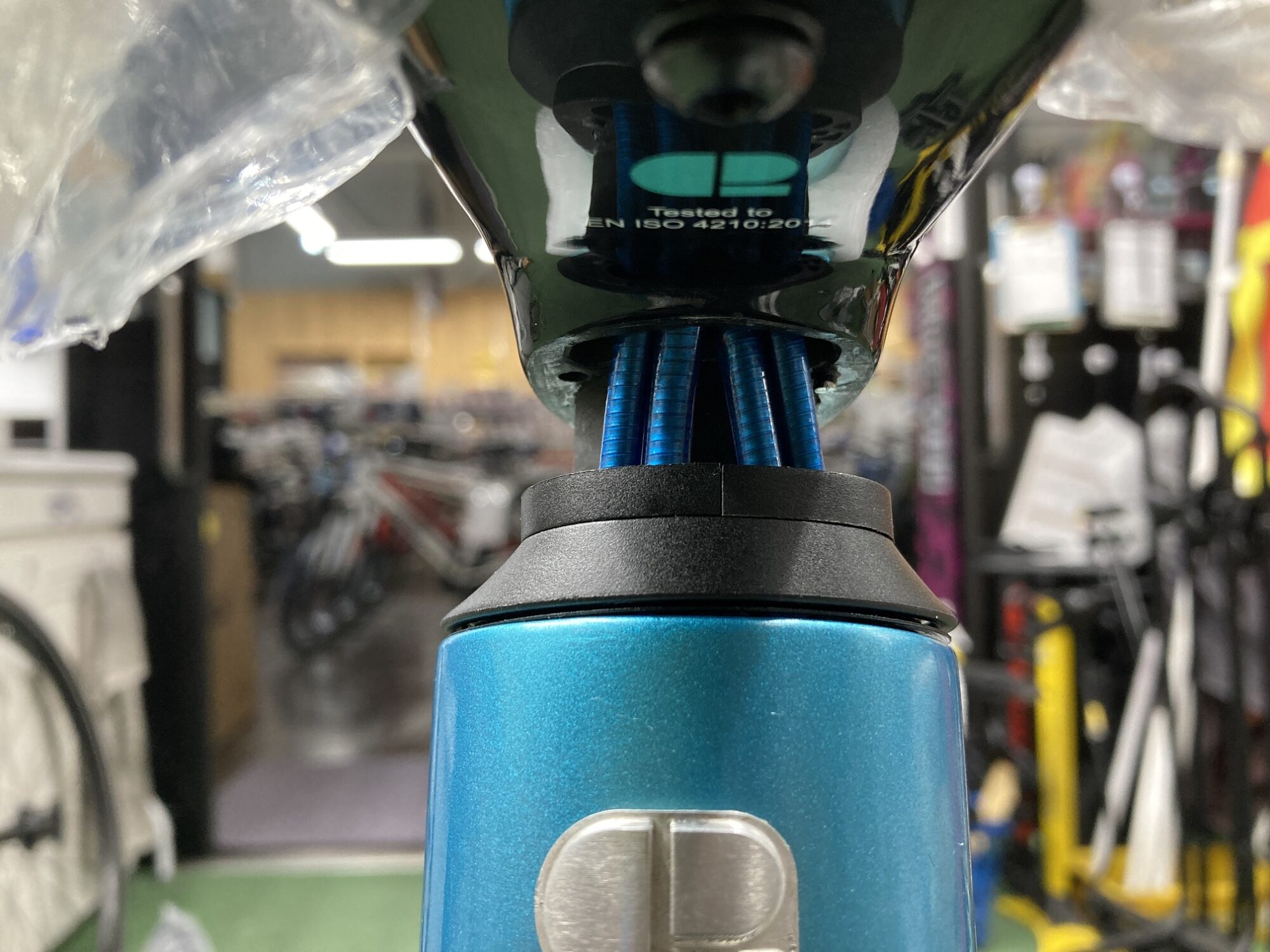 一体型ハンドルとフレームが合体したら、ブルーのアウターケーブルは見えなくなります。