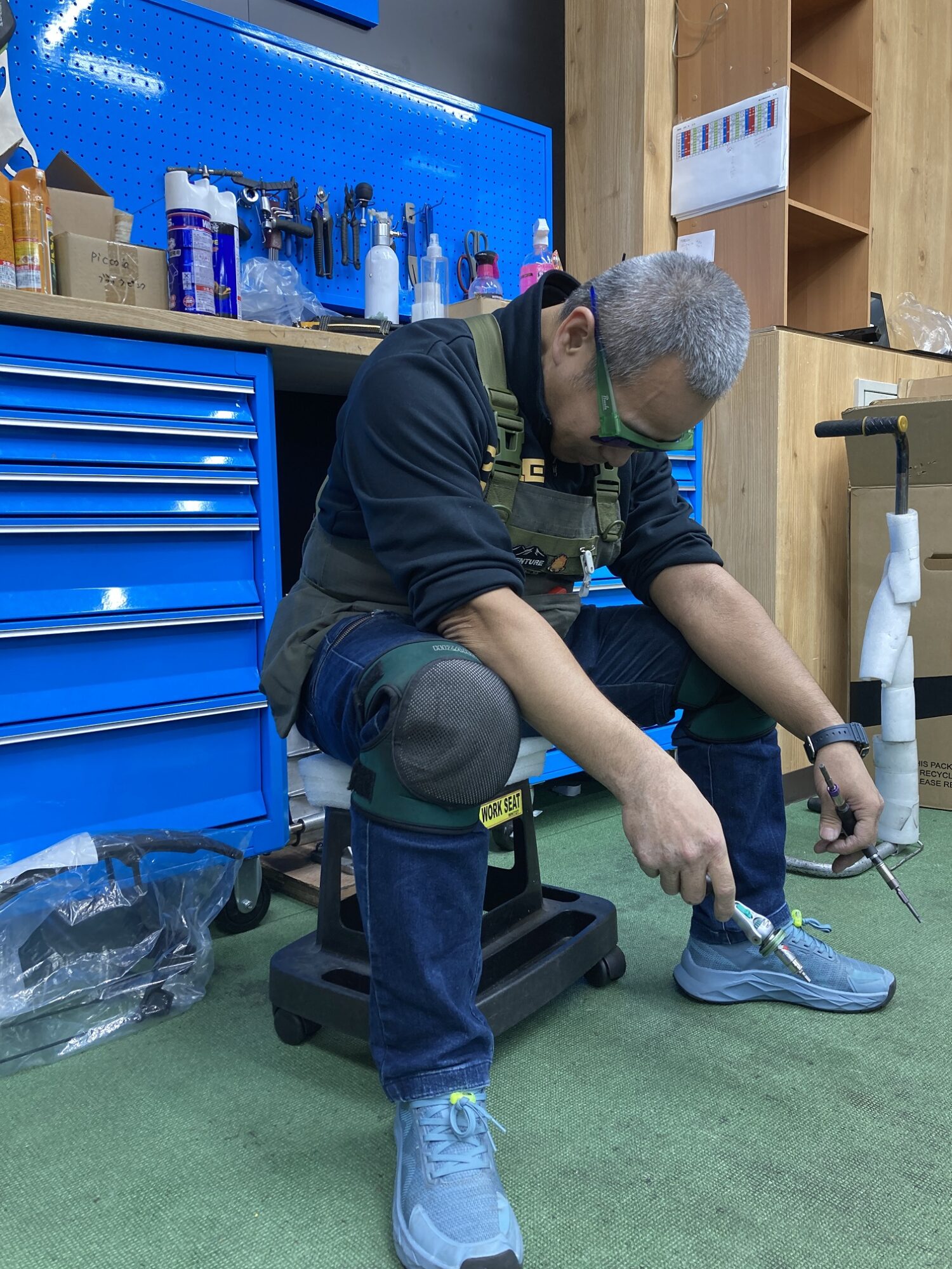 1台1台、ディスクブレーキ台座のフェイシング作業を行い、